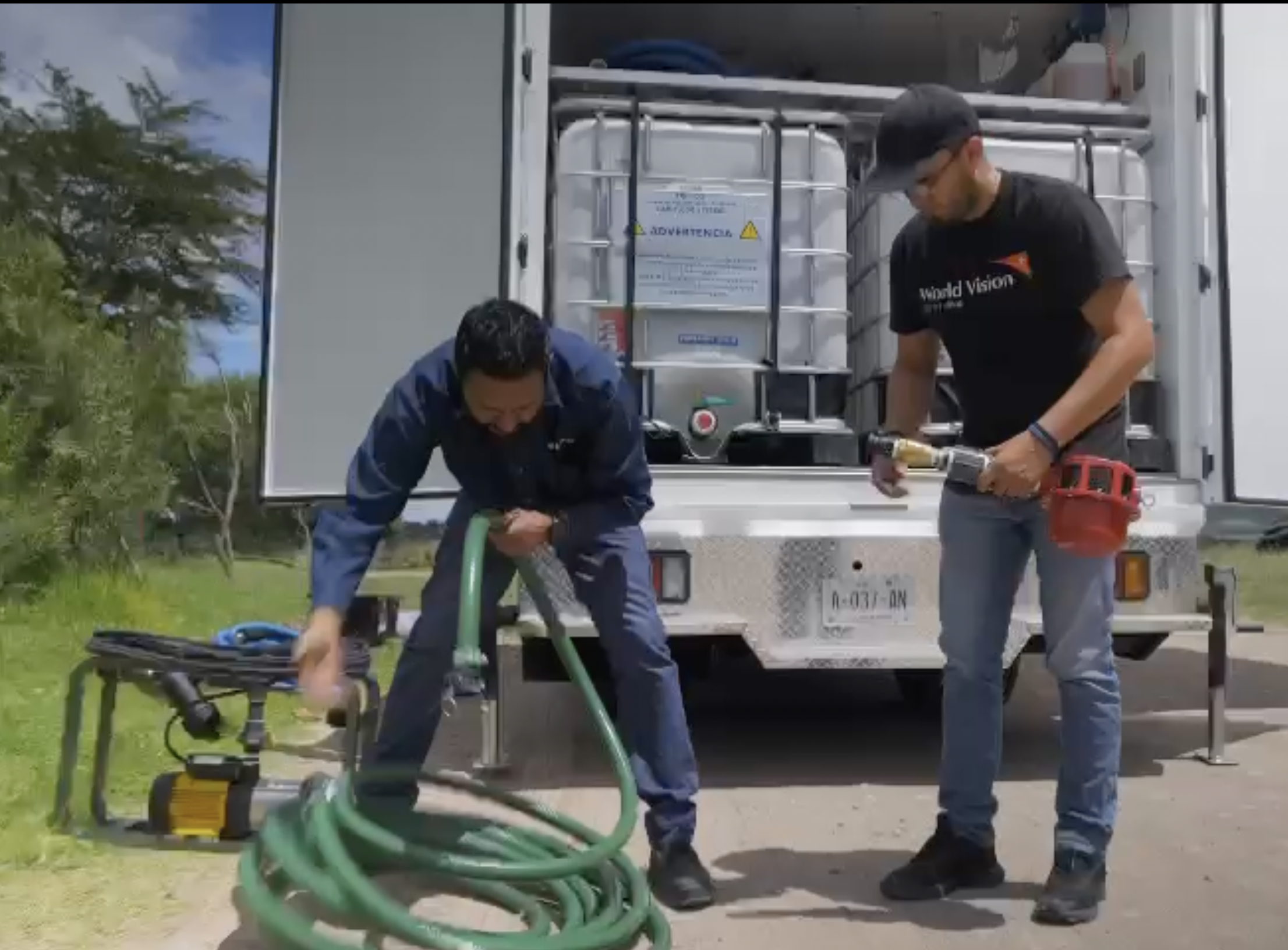 El agua purificada es entregada a las comunidades, garantizando acceso a agua potable.